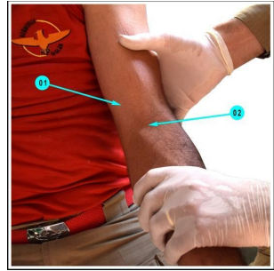 - Mantenha o braço da vítima na altura do coração, livre de roupas, com a palma da mão voltada para cima e cotovelo ligeiramente fletido