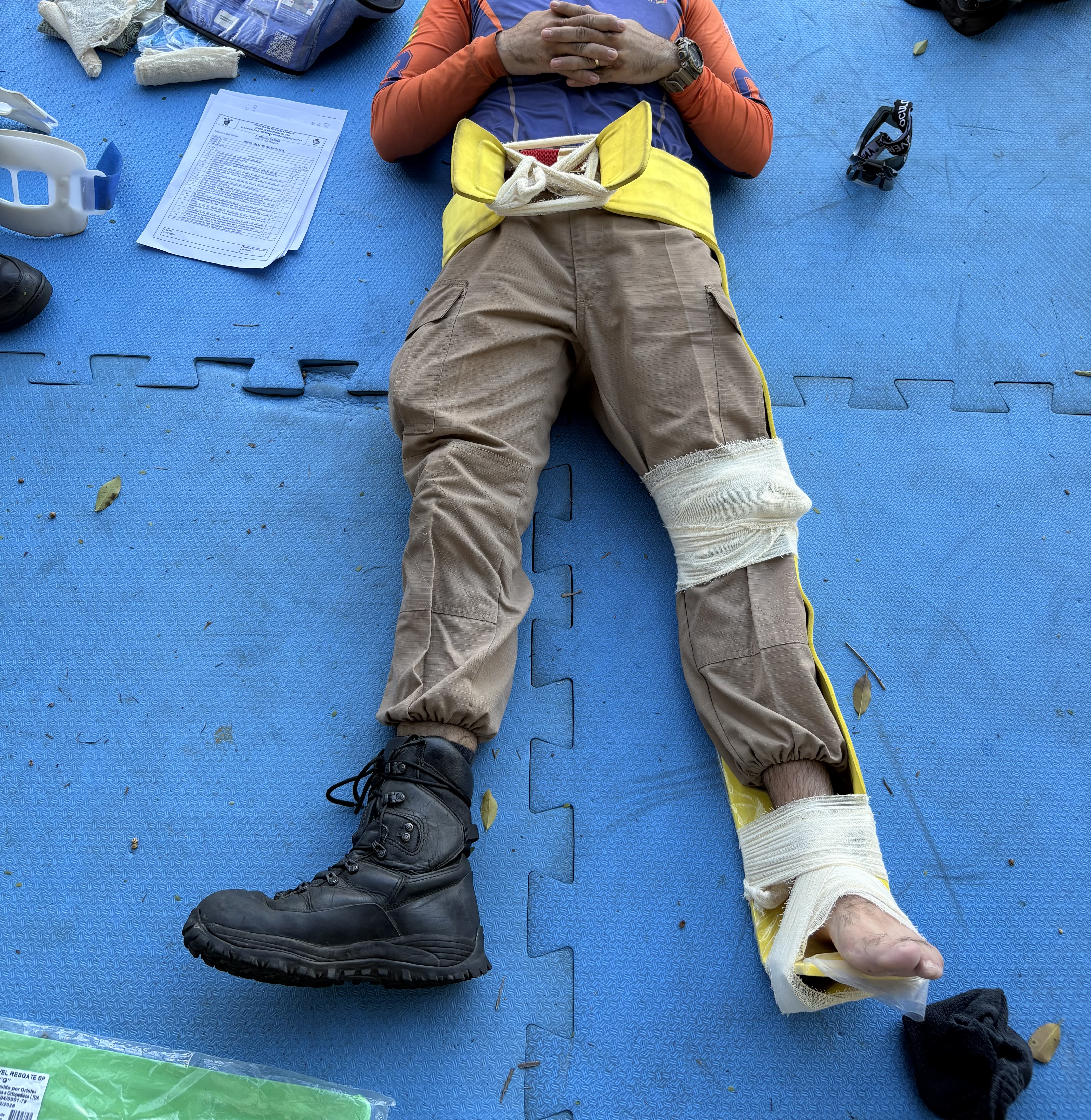 Ex.: Vítima apresentando fratura fechada em fêmur esquerdo. Realizado imobilização de uma articulação abaixo e uma acima da lesão, conforme protocolo institucional.